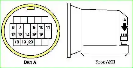 Belegung der Kontakte des Steuergerätes Automatikgetriebe (21126-1412020)
