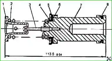 Bei jeder Demontage der GTZ ist es notwendig, die Elastizität der Feder 18 zu überprüfen und alle Gummimanschetten auszutauschen, auch wenn sie noch in gutem Zustand zu sein scheinen.