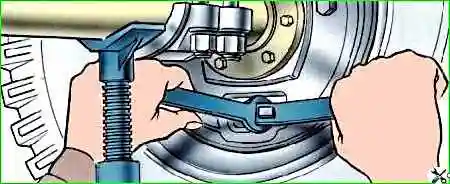 If the drum is difficult to remove, then screw the removable bolts into the three special threaded holes in the disk and, tightening them evenly, remove the drum.