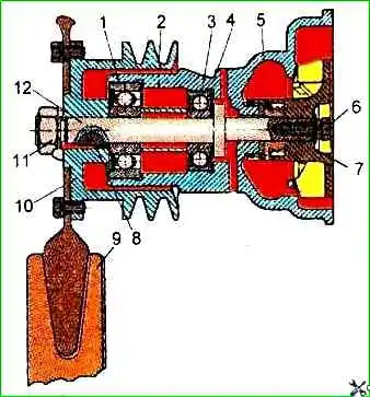 The end of the sealing washer during assembly of the liquid pump must be covered with a thin layer colloidal graphite grease OST 6.08.430-74.