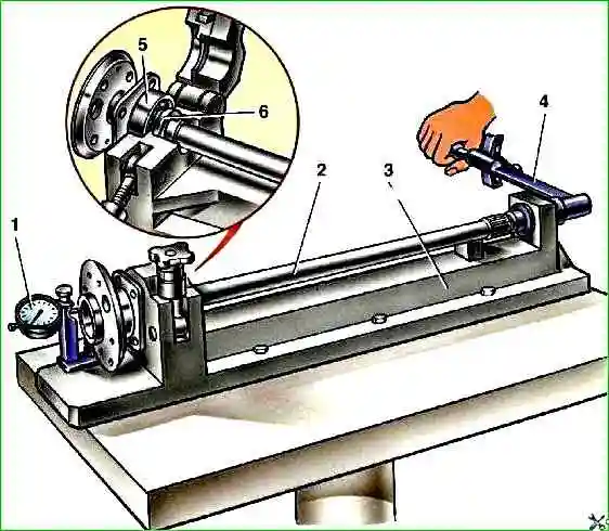 - - el semieje no está deformado y las superficies de asiento no están dañadas; El descentramiento del semieje, medido en los centros del muñón debajo del sello de aceite, no debe exceder los 0,08 mm.
