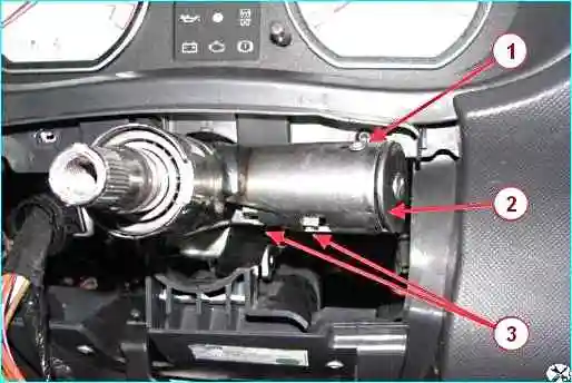 Отверткой Torx Т20 отворачиваем винт 1, рисунок 3, крепления выключателя зажигания к рулевой колонке.
