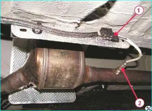 Отсоединяем колодку жгута проводов от колодки 1, рисунок 2, диагностического датчика кислорода.