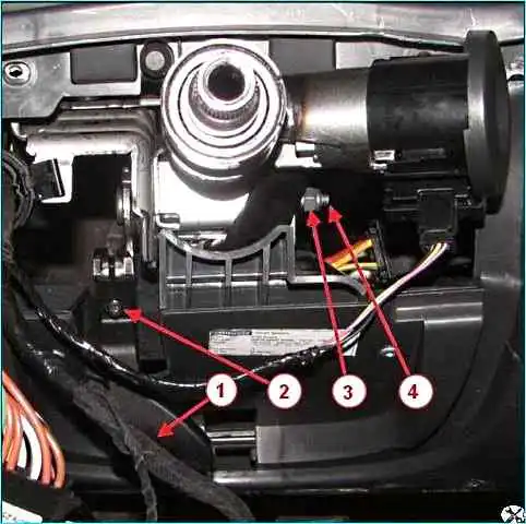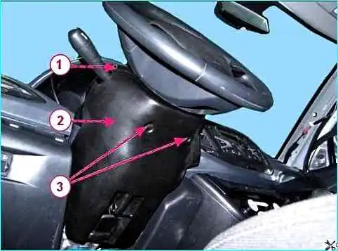 Отверткой Torx Т20 отворачиваем болт 2, рисунок 2, крепления рукоятки механизма регулировки рулевой колонки и снимаем рукоятку 1.