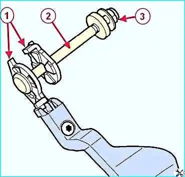 Установить на рулевую колонку ось 2, рисунок 3, механизма регулировки в сборе с механизмом блокировки, установить игольчатый подшипник, шайбы и закрепить ось гайкой 3.
