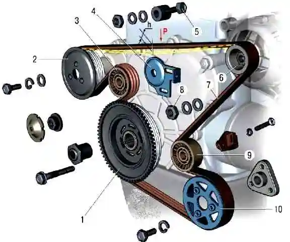 В зависимости от комплектации автомобиля могут применяться различные схемы и варианты приводов вспомогательных агрегатов.