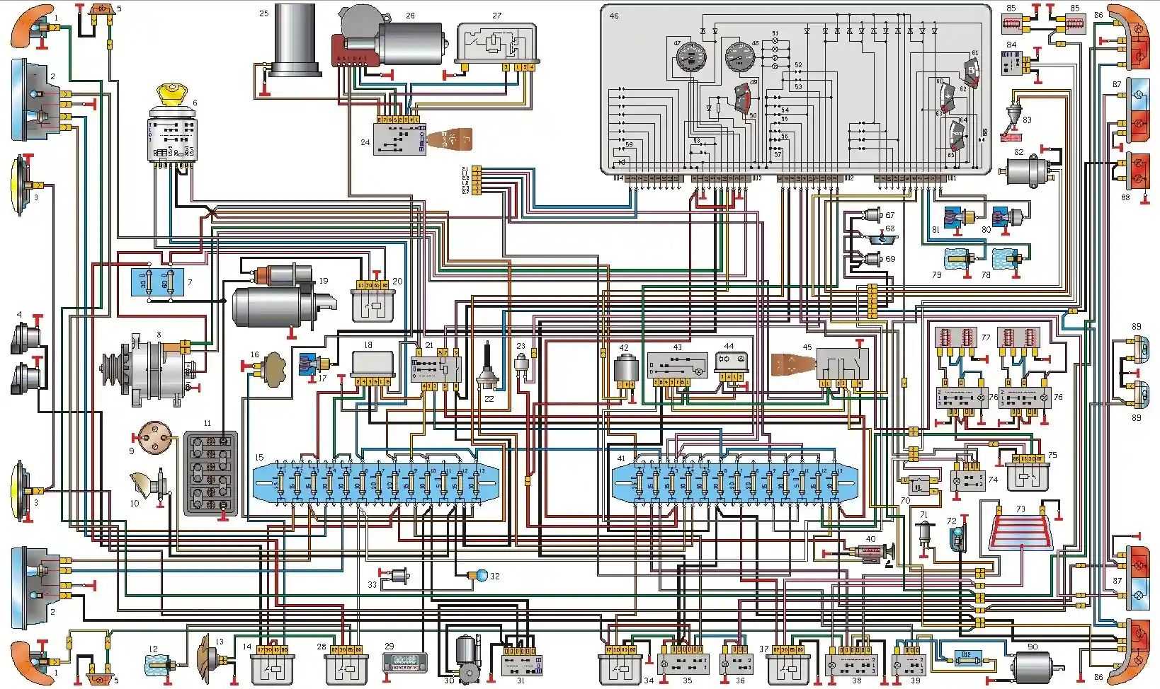 Схема электрооборудования автомобиля ГАЗ-3110 с двигателем ЗМЗ-4062