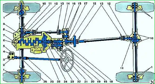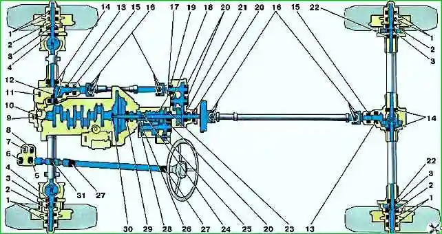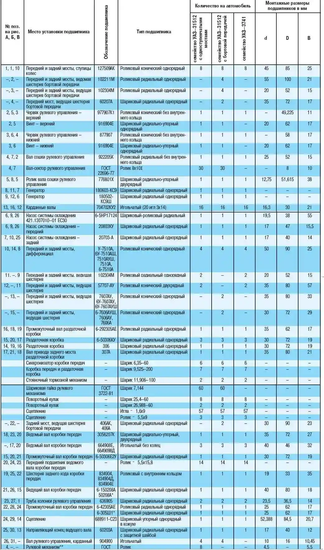 Рис. В. Схема расположения подшипников на автомобилях семейства УАЗ–3741