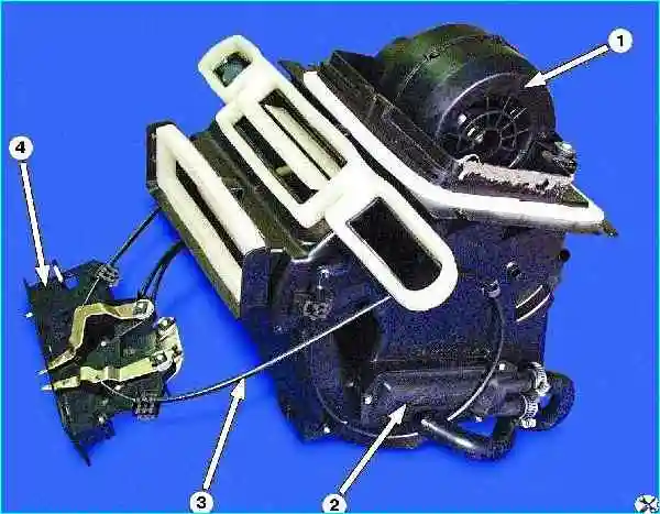 Отсоедините провода от электродвигателя отопителя.