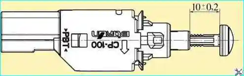 - выдвинуть шток из выключателя сигнала положения педали сцепления, обеспечив размер 10 мм, как показано на рисунке 6.