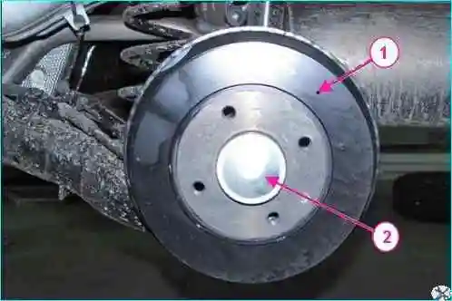 Снимаем колпак 2, рисунок 1, ступицы заднего колеса.