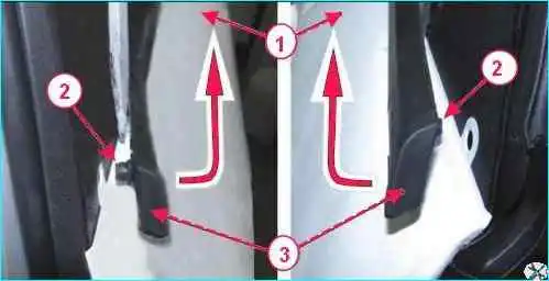 Снимаем обивку 1, рисунок 1, средней стойки кузова верхнюю.