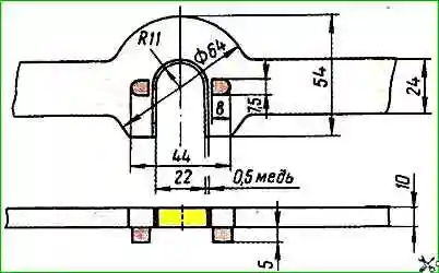 Несовпадение торцов детали и калибра допускается для нижнего и верхнего кронштейнов в пределах 0,25 мм.