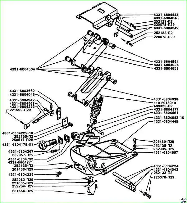 Детали механизма подрессоривания сиденья водителя автомобиля ЗИЛ-5301 по каталогу