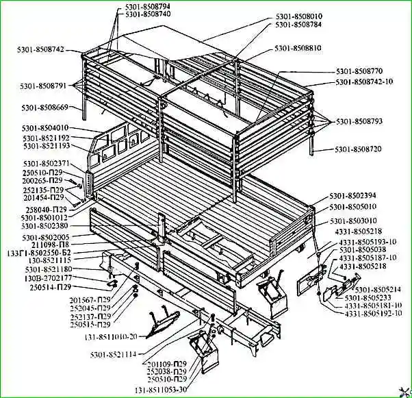Детали платформы ЗИЛ-5301 в соответствии с каталогом запасных частей