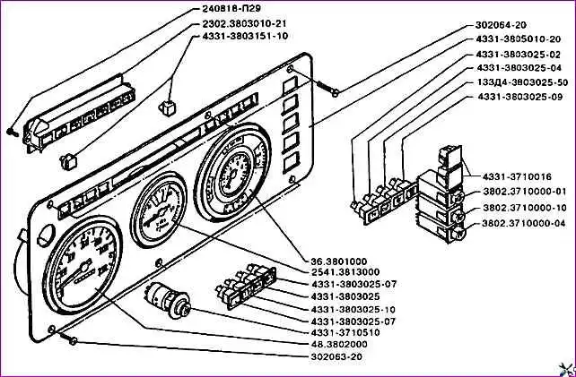 Детали сборки щитка приборов автомобиля ЗИЛ-5301 по каталогу