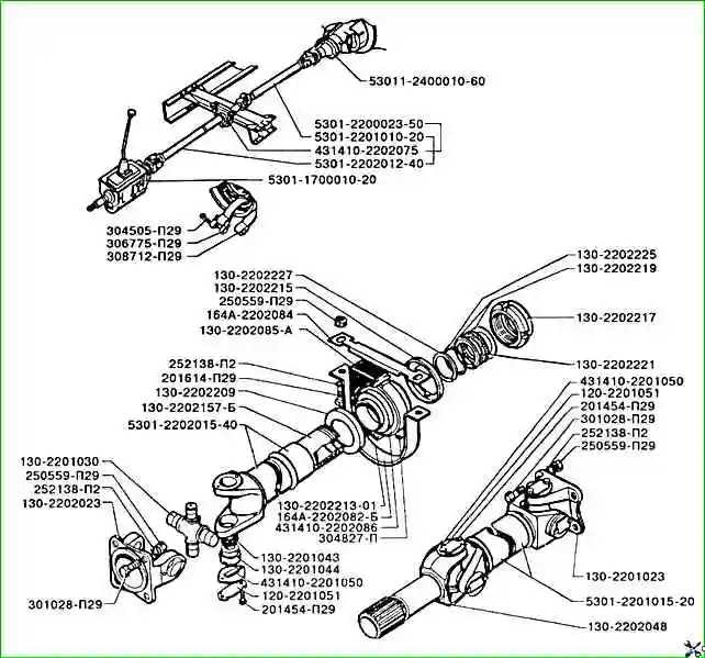 Номера деталей карданного вала ЗИЛ-5301 по каталогу