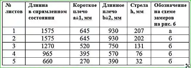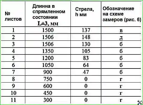 Размер «h» дан после обработки дробью и осадки рессоры.